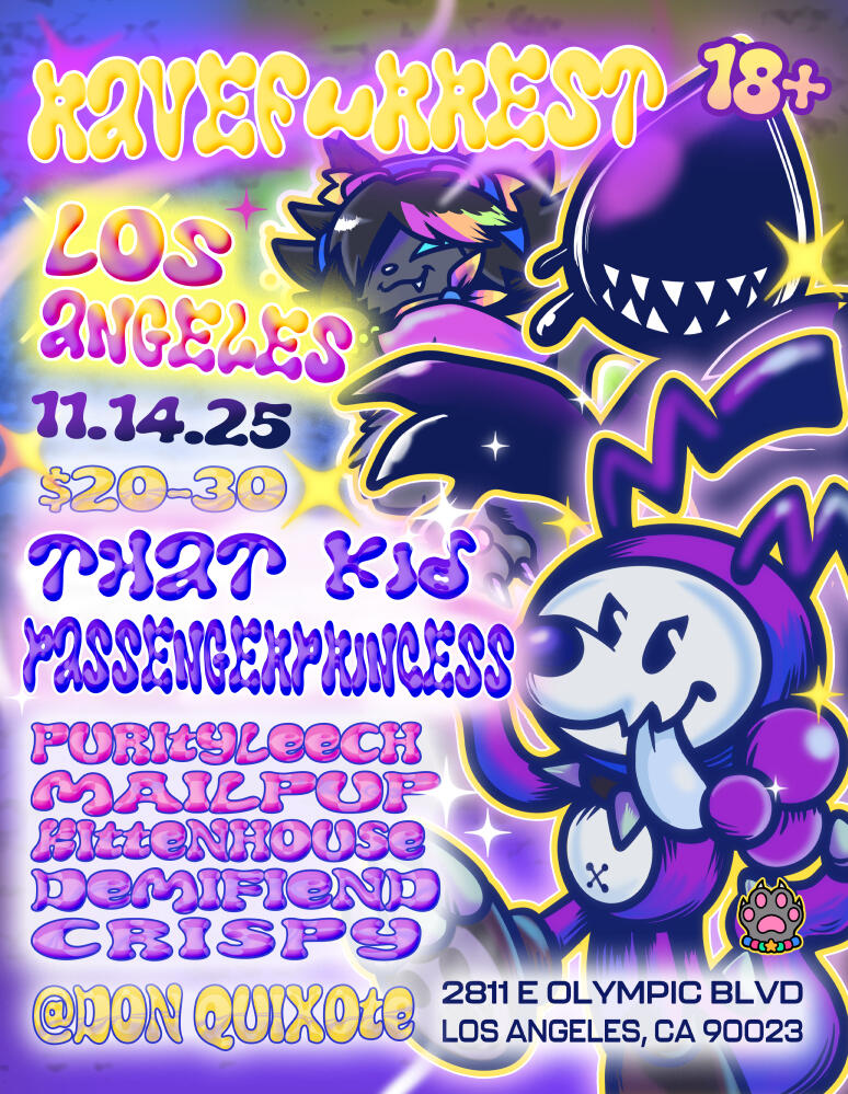 While we wish we could be on the move non-stop, there’s only so many weekends in a year. We’re always looking for new cities to play in, but a number of factors make this more difficult than it would seem. In order to give you the best experience possible, we have specific requirements for venues that go beyond that of a typical touring act. These include the ability to allow you to fursuit, 18+ whenever possible, and late closing times (1 AM or later). This is also the reason we aren’t able to return to some cities as frequently as we’d like to.If you’d like to help us come to your city, please fill out this form!