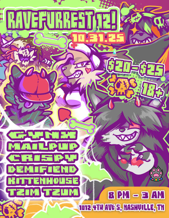 Because we book our events in multiple venues and states, please keep in mind our main attendance policy specifically applies to our home base in Nashville. Some events may be 21+ rather than 18+. Some events may have food and drink available and some may not. This does not change the code of conduct, and above all, PLEASE respect venue's staff and Ravefurrest staff alike!